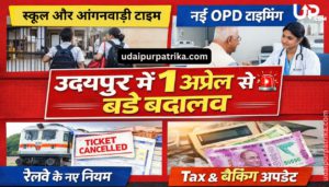 उदयपुर। शहर में 1 अप्रैल से आमजन की दिनचर्या से जुड़े कई महत्वपूर्ण बदलाव लागू होने जा रहे हैं।